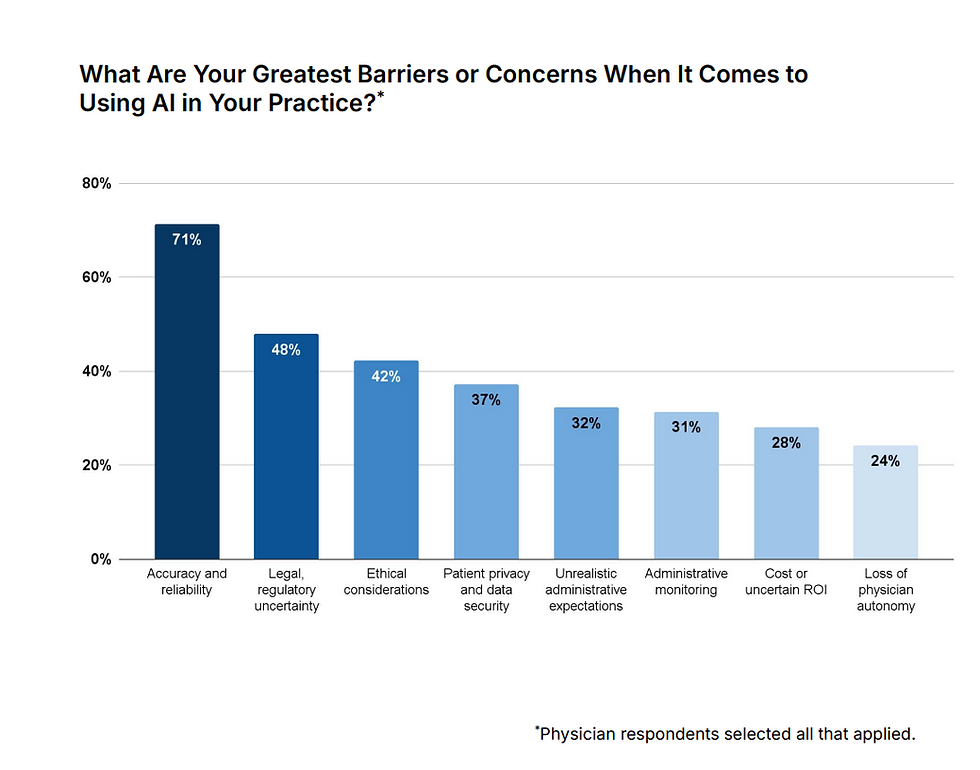 AI adoption is distributed broadly across specialties - not concentrated in a few early-adopter fields. The technology is versatile enough for diverse clinical settings.